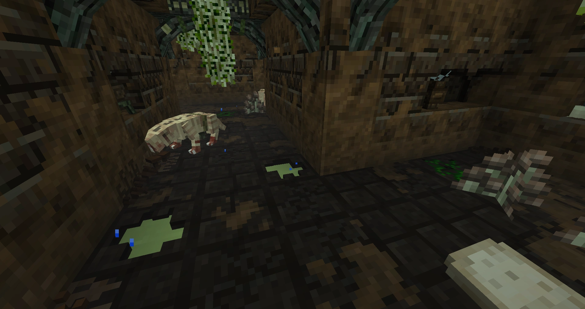 Upon reaching the end of these tunnels, the player will find themselves in a slightly larger tunnel that loops around on itself, finding multiple entryways that the Crypt Crawlers had been spawning from. Each has a suspended Carved Rotten Bark above the entryways which will fall when the vine is destroyed, blocking them and preventing further spawns. Once the player gets to the end there will be a secret Crypt room with an Ancient Greatsword, as well as urns and vases to smash. There are also some false walls - one of which leads back to the entryway, and the other may lead to an armor stand with full Ancient Armor.